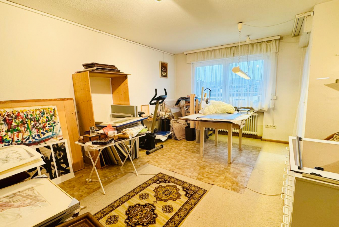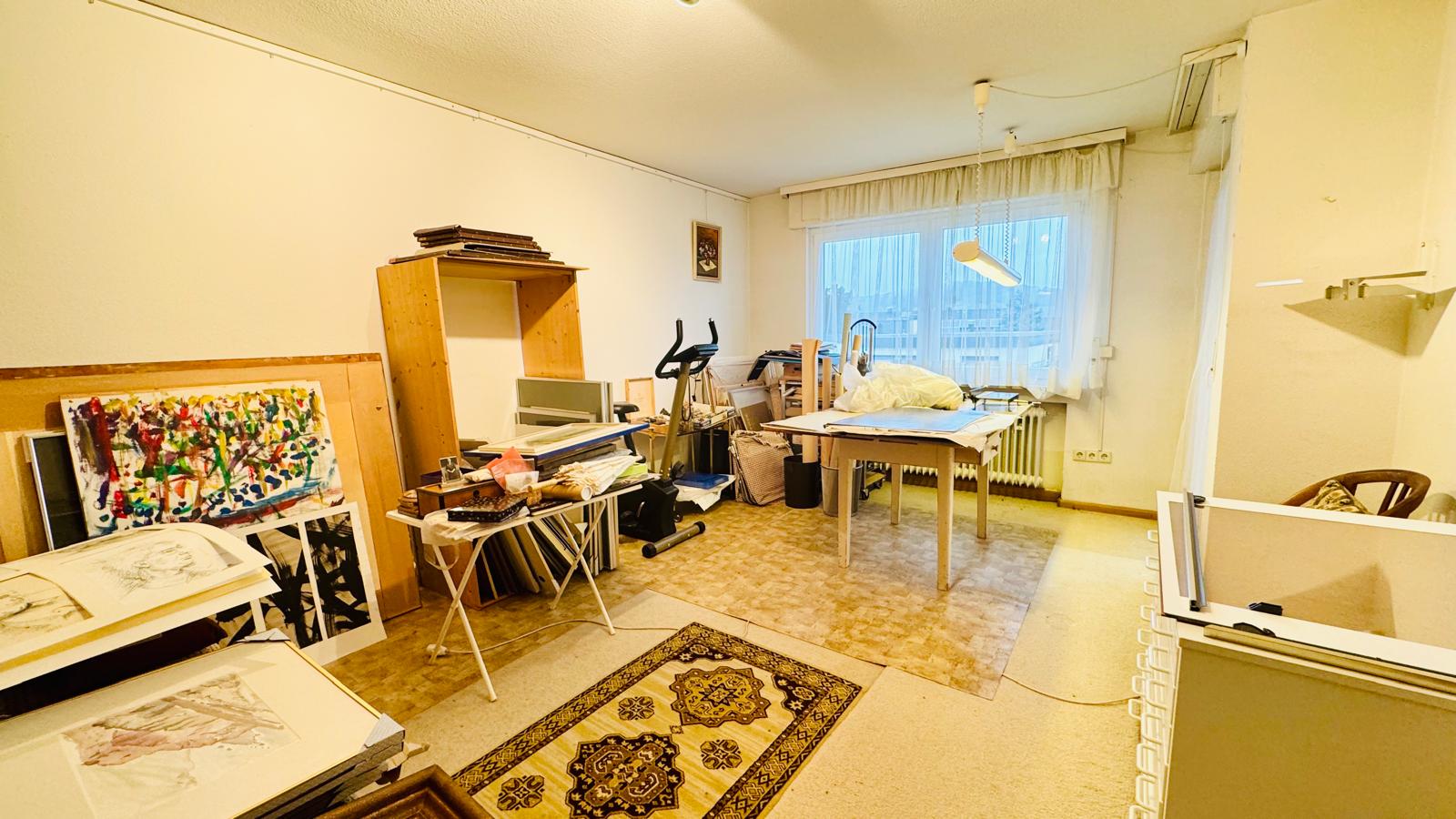 Das Dachgeschoss bietet einen großen Studioraum, einen Dachspeicher und ein weiteres WC mit Waschbereich.